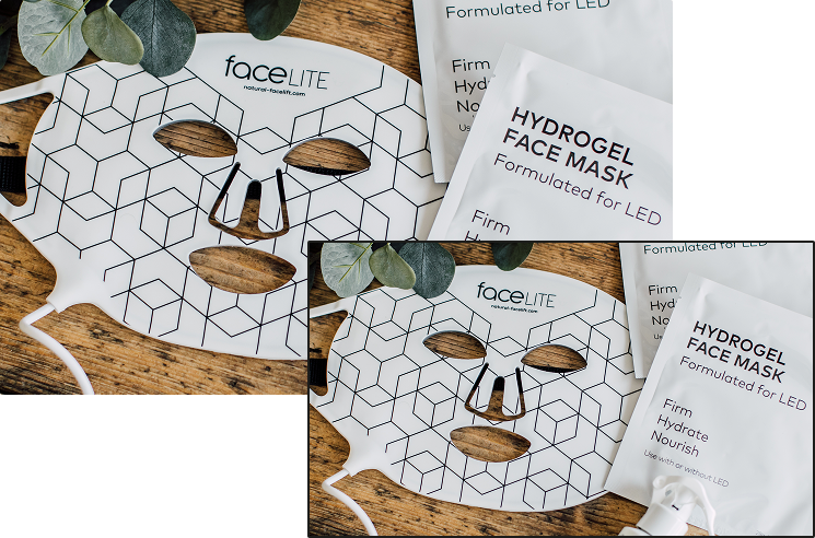 in conjunction with the faceLITE peel pads and hydrogel mask